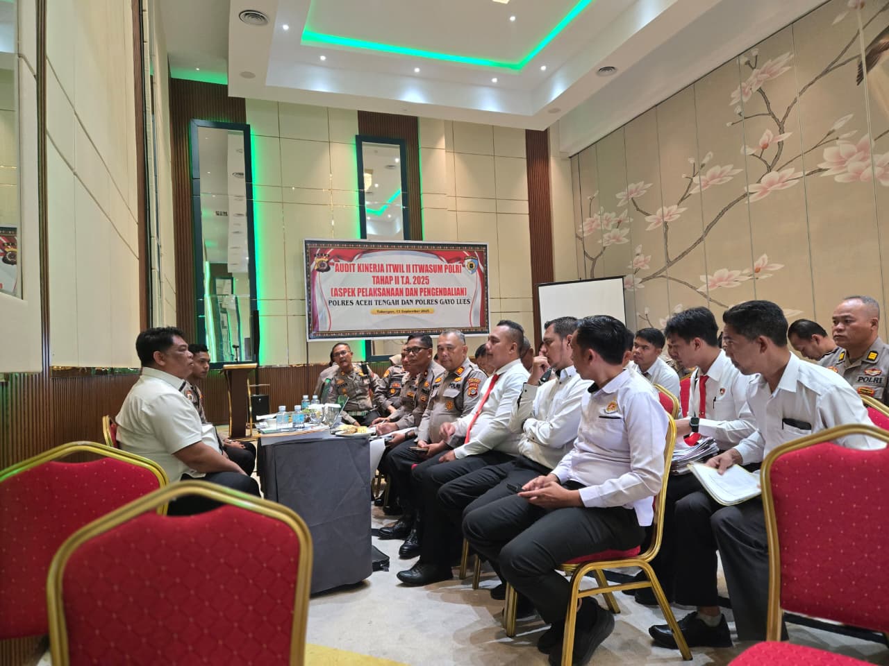 Tim Audit Kinerja Tahap II T.A. 2025 Itwasum Polri melaksanakan pemeriksaan terhadap Polres Aceh Tengah dan Polres Gayo Lues dengan fokus pada aspek pelaksanaan dan pengendalian, pada Sabtu 13 September 2025 bertempat di Aula Ballroom Hotel Parkside Takengon, Sabtu (13/09/2025).