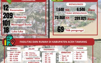 Aceh Tamiang – siaga0724.com: Sebagaimana banyak diberitakan di berbagai media, Bupati Acech Tamiang menyebutkan batas waktu pendataan terhadap kerusakan rumah akibat banjir yang melanda di Kabupaten Aceh Tamiang tinggal 3 hari lagi. Demikian relis berita yang diterima melalui saluran Humas Seddakab Aceh Tamiang, Senin, (12/1/26). Disebutkan, bahwa sehubungan dengan dilakukannya pendataan rumah rusak akibat banjir November 2025 lalu, Bupati Aceh Tamiang, Irjen Pol (P) Drs. Armia Pahmi, MH, melalui Kalaksa BPBD, Iman Suhery menginstruksikan kepada perangkat kampung untuk berperan aktif mendata warganya.