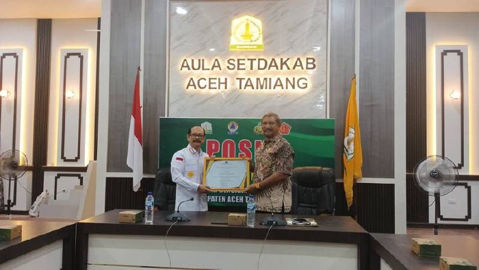 Piagam penghargaan tersebut diserahkan langsung oleh Kepala Kantor Wilayah Kementerian Hukum Aceh, Meurah Budiman, kepada Bupati Aceh Tamiang, Kamis (29/1/26).