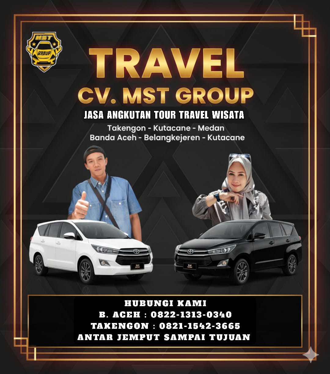 CV. MST Group (Mantap Sedap Taboh Group) kini hadir memberikan layanan jasa angkutan tour dan travel wisata dengan rute utama Takengon, Kutacane, Medan, Banda Aceh hingga Blangkejeren, dengan armada yang nyaman dan layanan profesional, CV. MST Group siap menjadi pilihan terbaik masyarakat untuk perjalanan antar kota maupun wisata, Jumat (19/09/2025).