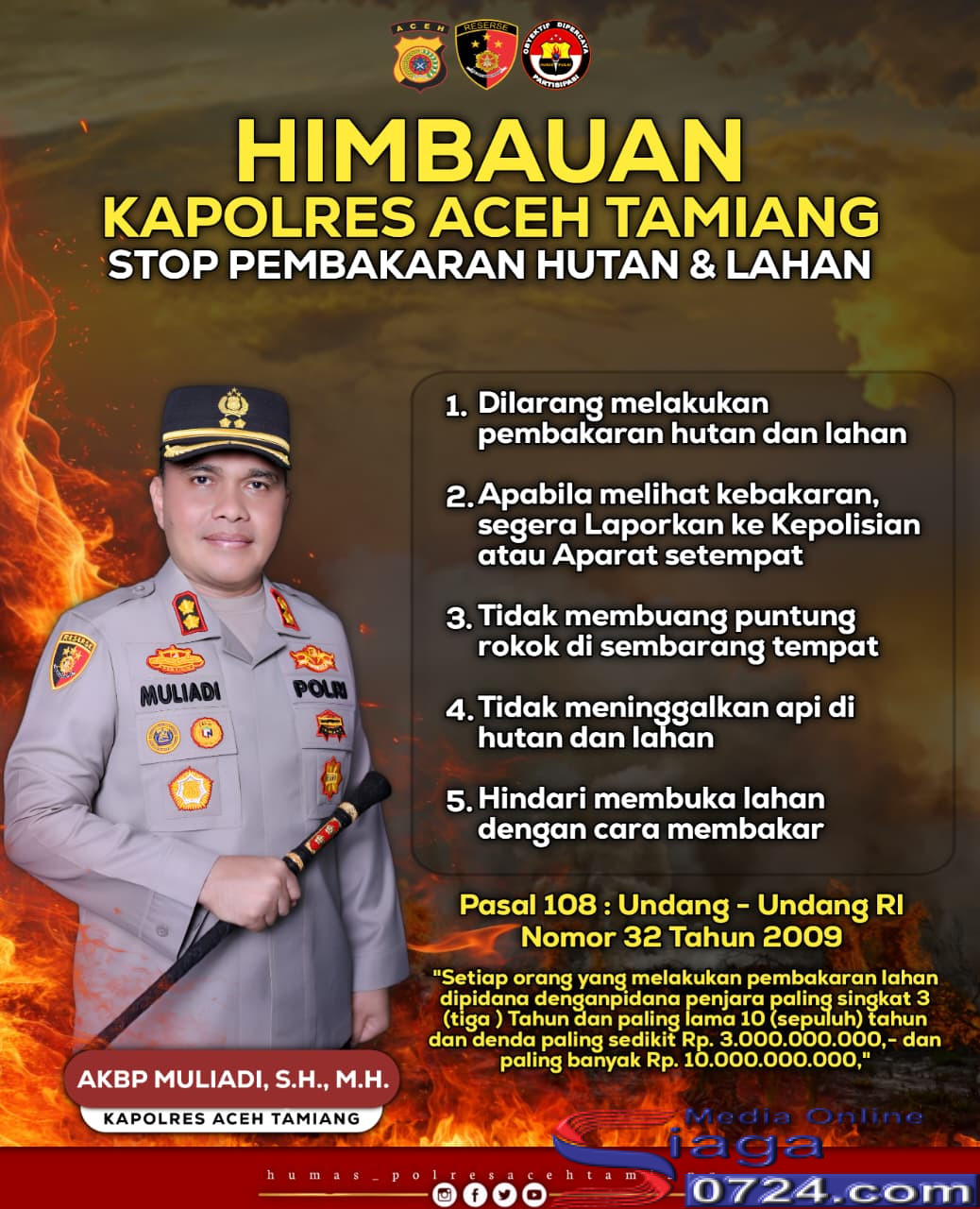 Secara umum perintah tersebut berisi perintah memberikan himbauan kepada seluruh lapisan masyarakat Aceh Tamiang untuk terus menjaga hutan dan melarang membakar hutan. Himbauan tersebt juga dibuat berupa spanduk  dan memasangnya ditempat Strategis dan Mudah terlihat oleh Masyarakat. Sehingga, tempat pemasangan harus di tempat Kebakaran Hutan dan Lahan.