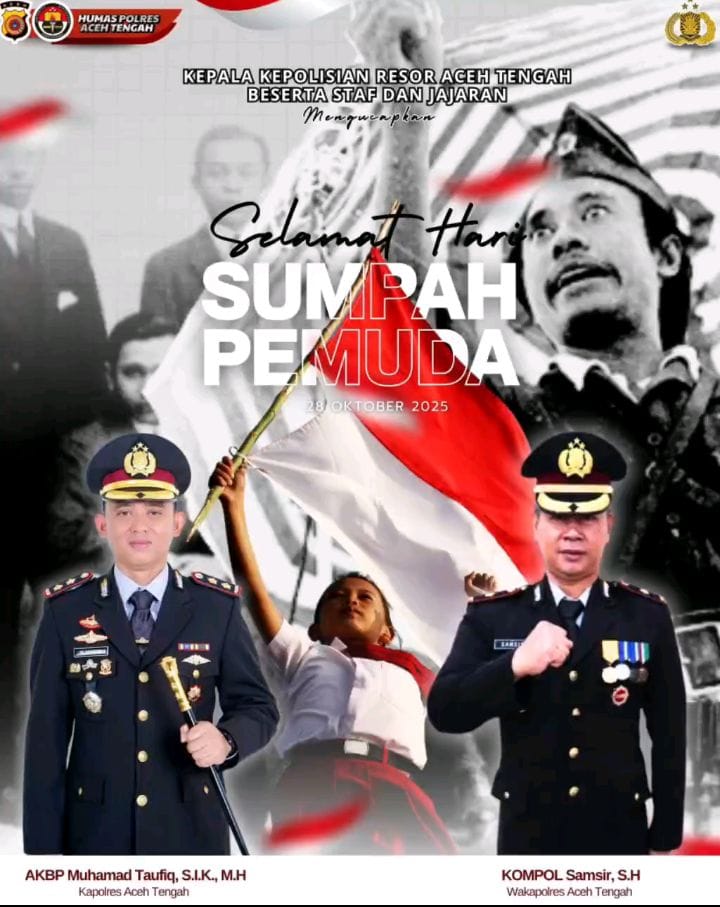 Kapolres Aceh Tengah beserta staf mengucapkan Selamat Hari Sumpah Pemuda ke-97, Selasa (28/10/2025).