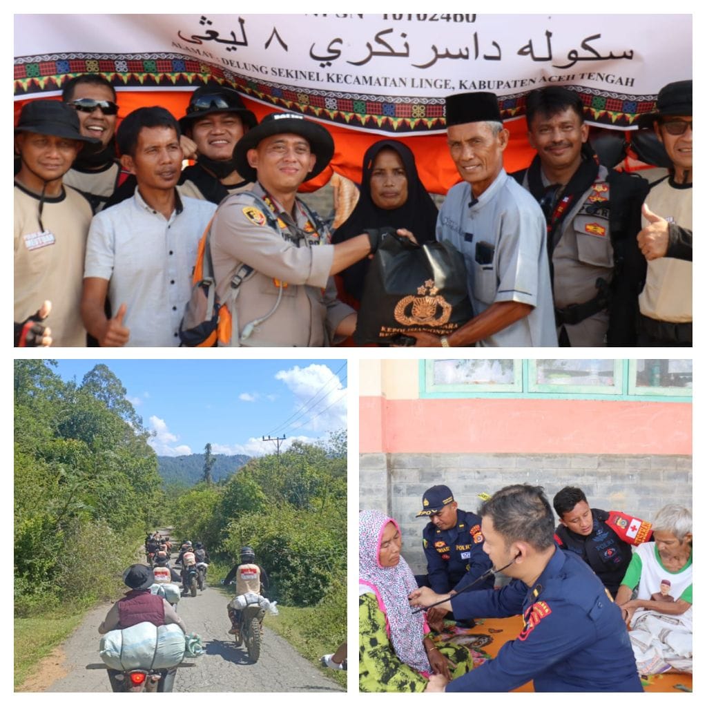 Kegiatan kemanusiaan tersebut turut dihadiri para pejabat utama, personel Polres Aceh Tengah, Brimob Polda Aceh, dan komunitas Trail Aceh Tengah.