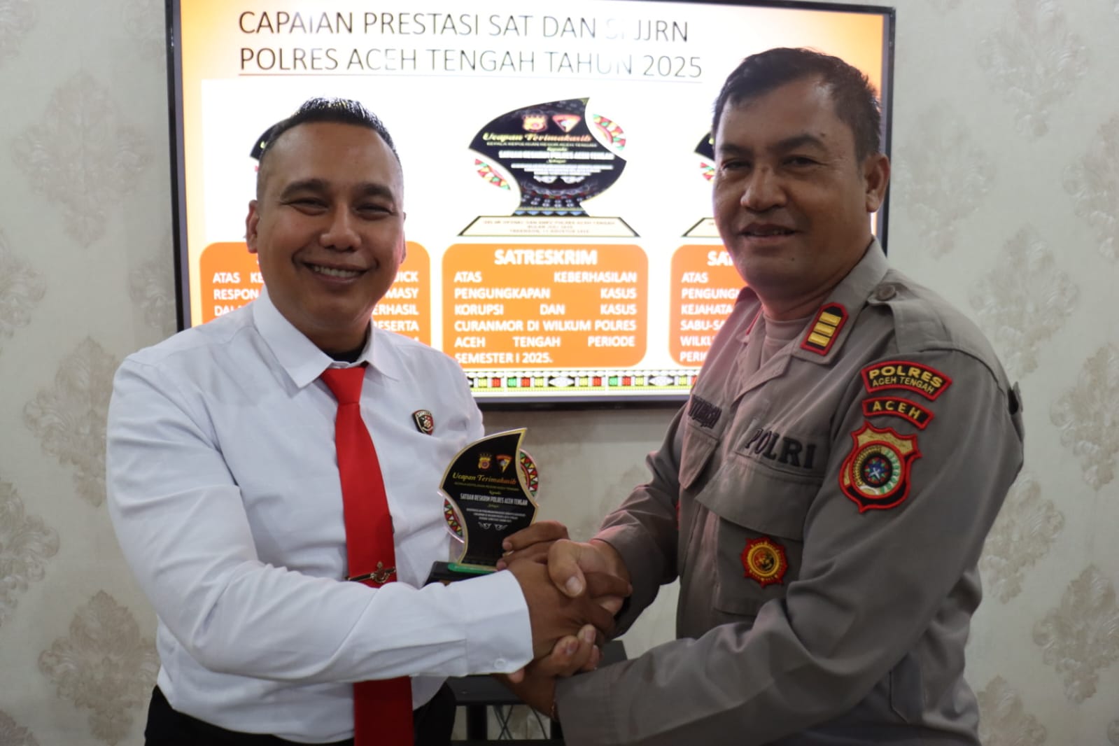 Penghargaan itu diserahkan dalam kegiatan Gelar Operasional di Mapolres Aceh Tengah, pada Senin 11 Agustus 2025.