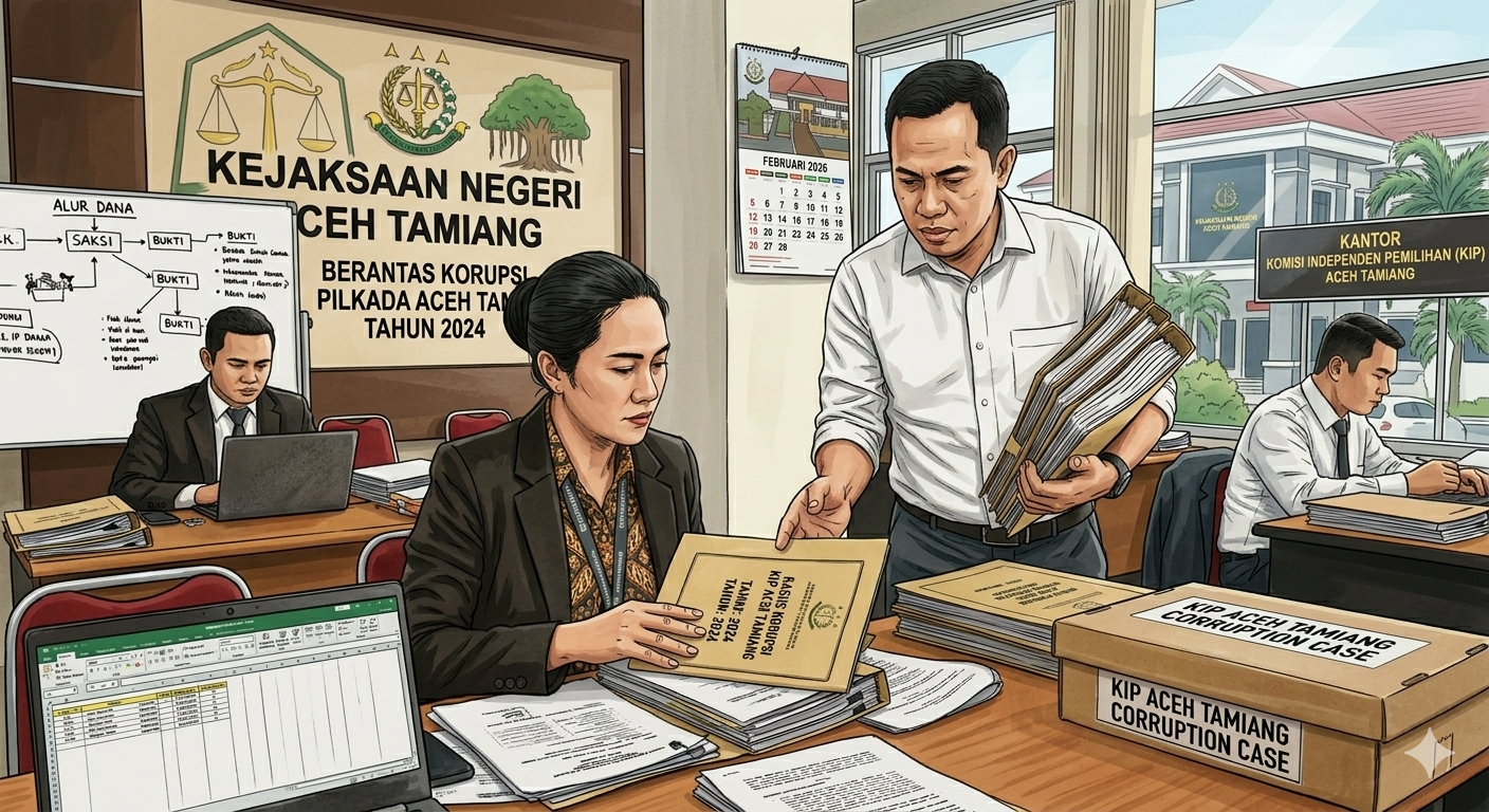 Aceh Tamiang – siaga0724.com: Kasus dugaan korupsi di Komisi Independen Pemilihan (KIP) Aceh Tamiang kini memang tengah memasuki babak baru yang lebih serius. Berdasarkan perkembangan terbaru hingga Februari 2026, Kejaksaan Negeri (Kejari) Aceh Tamiang telah meningkatkan status penanganan kasus ini dari penyelidikan ke tahap penyidikan.