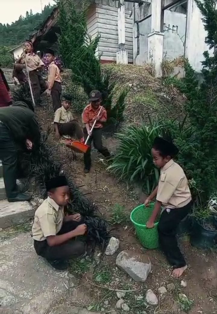 Begitu juga dengan Kepala Sekolah (Kepsek) turut hadir dan ikut membersihkan sampah dan menyapu halaman sekolah/lapangan serta memungut sampah.