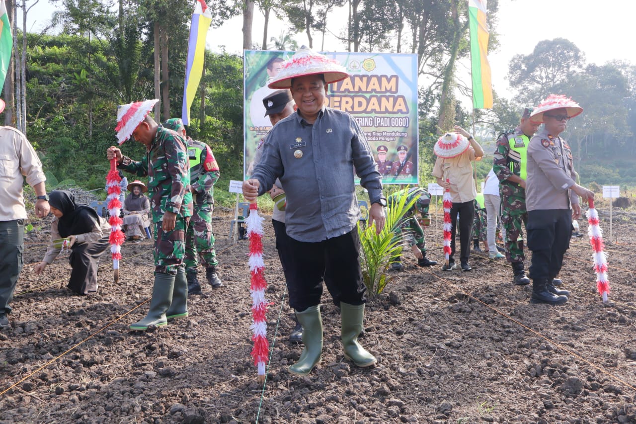 Hal itu ditegaskan Pj. Bupati Aceh Tamiang Asra bersama Kadistanbun Aceh dan Kepala BB Perbenihan dan Proteksi Tanaman Perkebunan Medan saat melakukan penanaman perdana padi darat (padi gogo) dengan memanfaatkan lahan program Peremajaan Sawit Rakyat (PSR) di Kampung Jamur Labu Kecamatan Rantau, Jumat (7/2/2025) pagi.