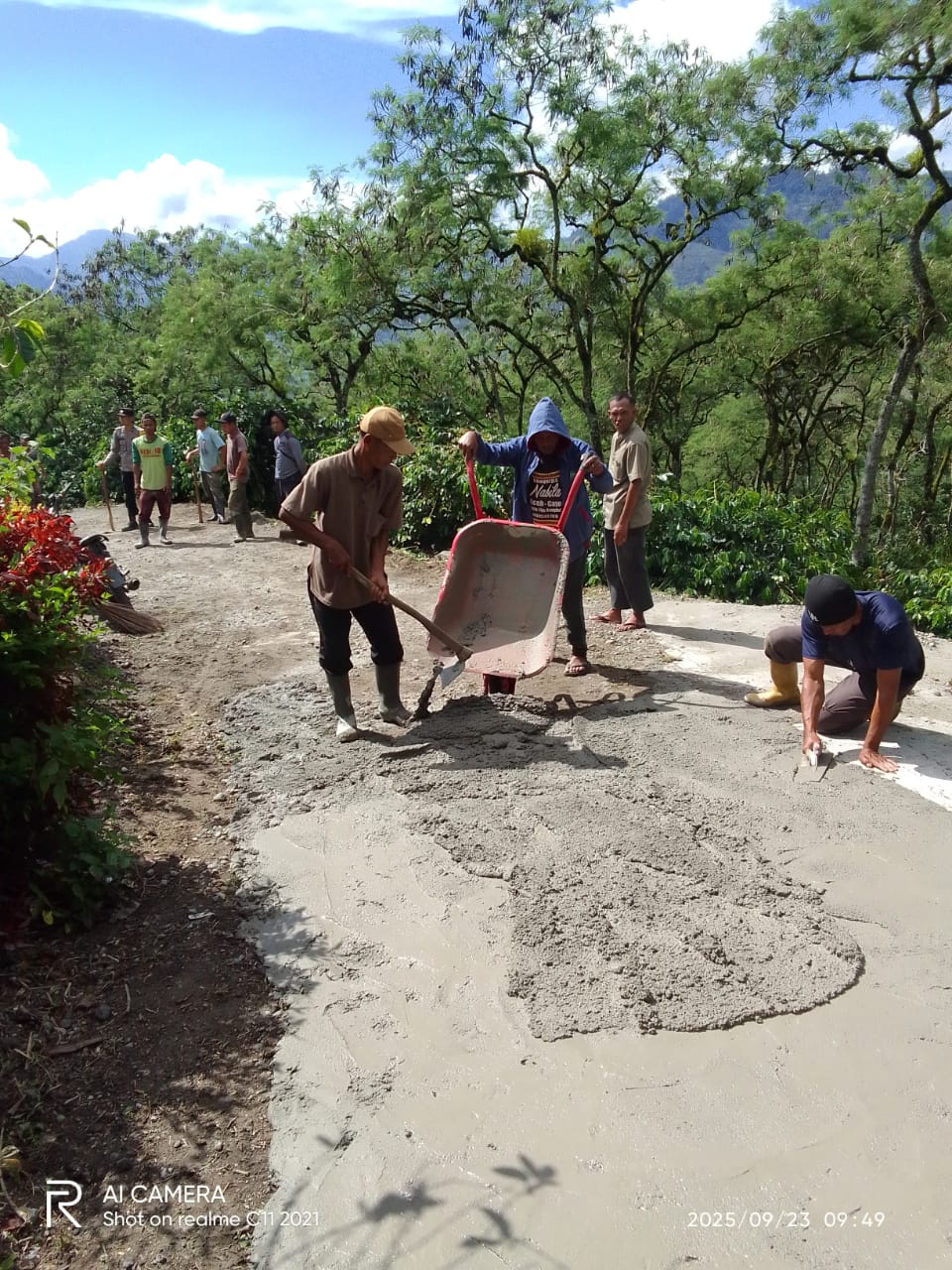 Pemerintah Kampung (Desa *Red)Arul Latong Kecamatan Bies Kabupaten Aceh Tengah gelar Gotong-Royong bersama warganya membersihkan jalan serta menambal, dan turut di dampingi Bhabinkamtibmas Polisi Polres Aceh Tengah, Selasa (23/09/2025).