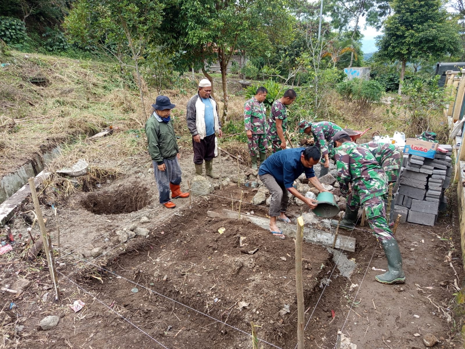 TNI Manunggal Membangun Desa (TMMD) ke-126 Kodim 0106/Aceh Tengah bergotong-royong bersama masyarakat membangun Mck di Kampung (Desa *Red) Arul Gele Kecamatan Silih Nara Kabupaten Aceh Tengah, Kamis (23/10/2025).
