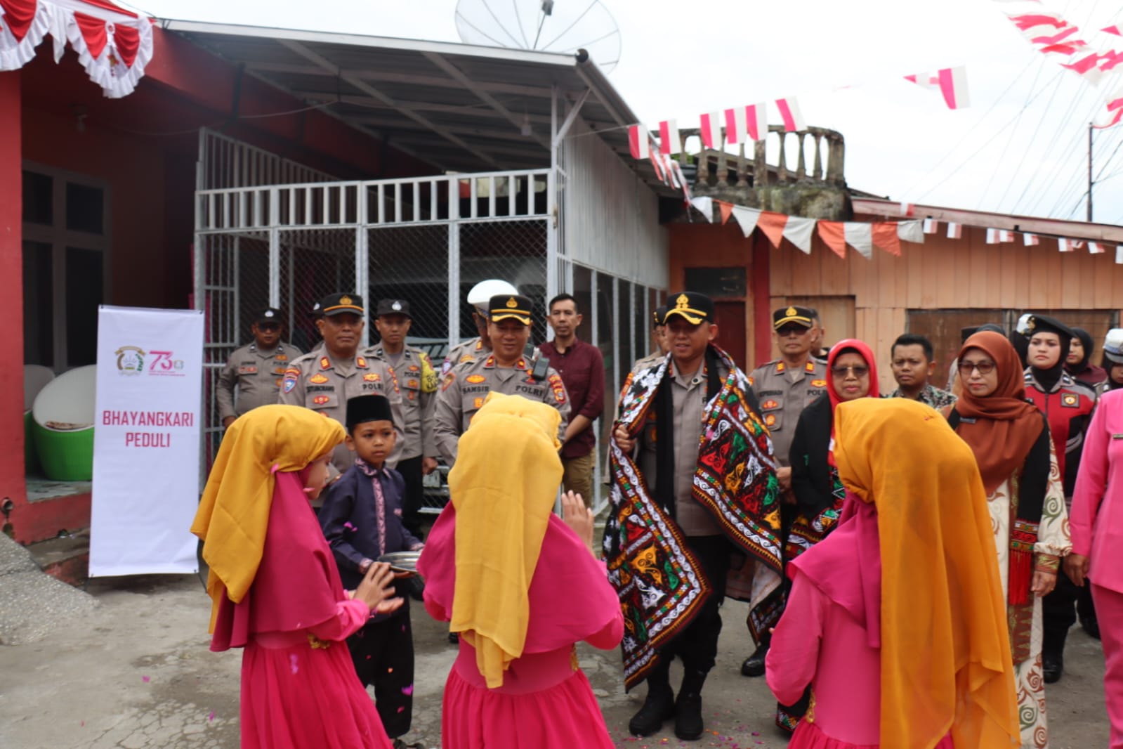 Kapolres Aceh Tengah, AKBP. Muhamad Taufiq, S.I.K, M.H, bersama Wakapolres dan Pejabat Utama (PJU) Polres, menyerahkan langsung 20 paket sembako serta tali asih kepada para anak-anak panti, kehadiran rombongan disambut hangat dengan tarian adat Gayo, Tari Guel, diiringi lambaian bendera tangan merah putih dari anak-anak panti, menciptakan suasana meriah sekaligus penuh keakraban.