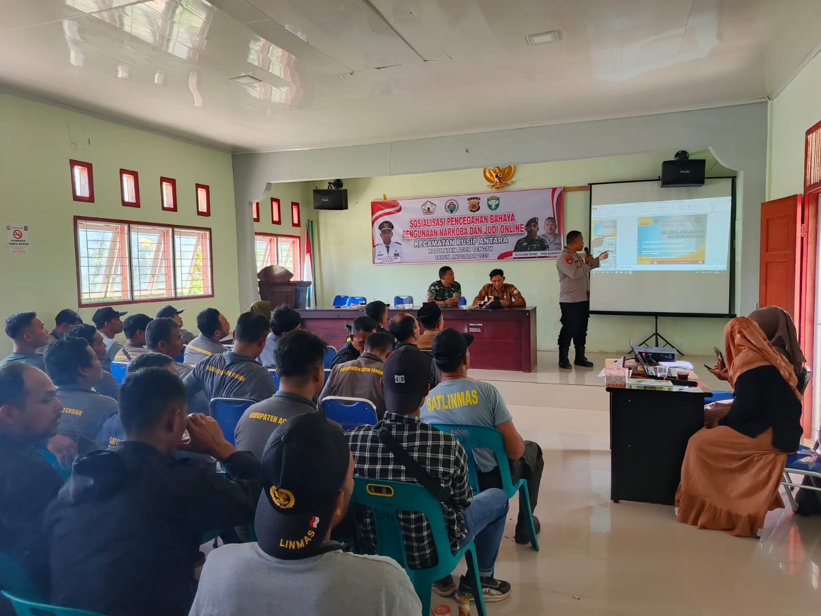 Kapolsubsektor Rusip Antara Polsek Silih Nara, IPDA. Sunarto, memimpin langsung kegiatan sosialisasi di Aula Kantor Camat Rusip Antara, Kabupaten Aceh Tengah.
