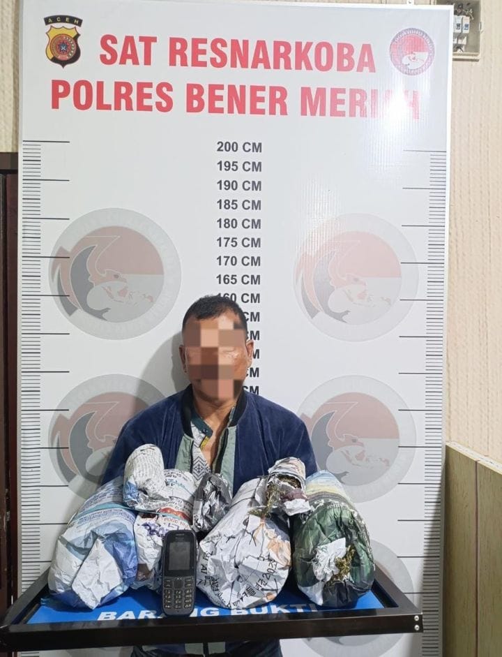 Penangkapan dilakukan pada Kamis, 9 Oktober 2025, sekitar pukul 16.00. WIB di Desa Bener Pepanyi, Kecamatan Permata, Kabupaten Bener Meriah,dari tangan pelaku, petugas menyita tujuh paket ganja yang dibungkus kertas koran dan disimpan dalam karung putih, serta satu unit sepeda motor Honda Vario putih dan telepon genggam Nokia hitam yang diduga digunakan dalam aksinya.