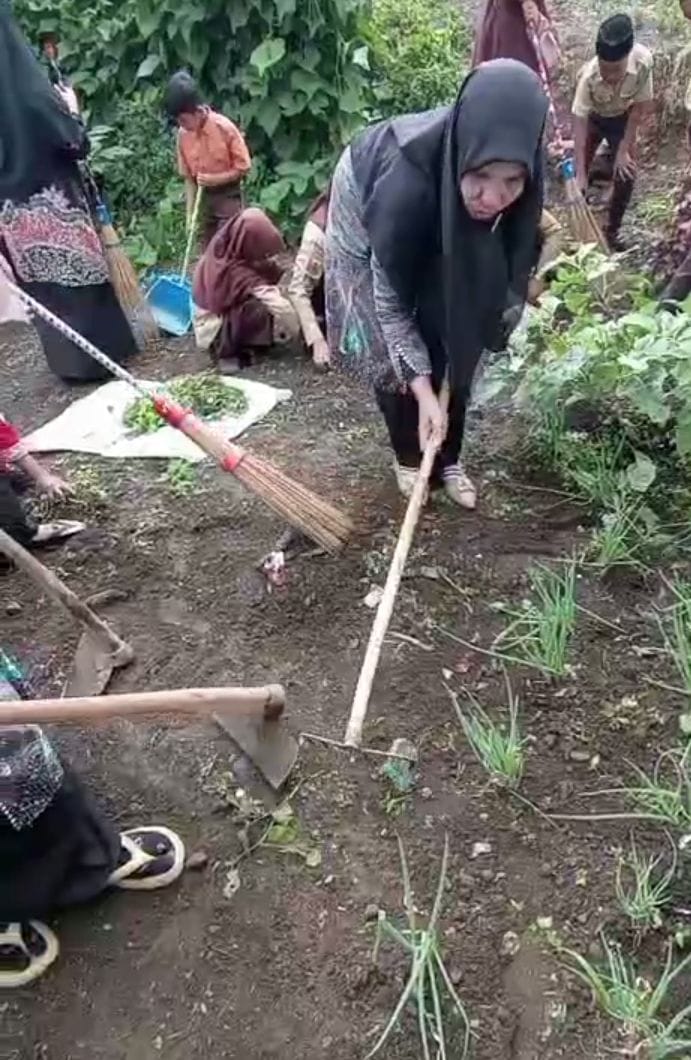 Begitu juga dengan Kepala Sekolah (Kepsek) yang ikut langsung membersihkan bersama guru pendidik dan murid SDN 4 Kebayakan.