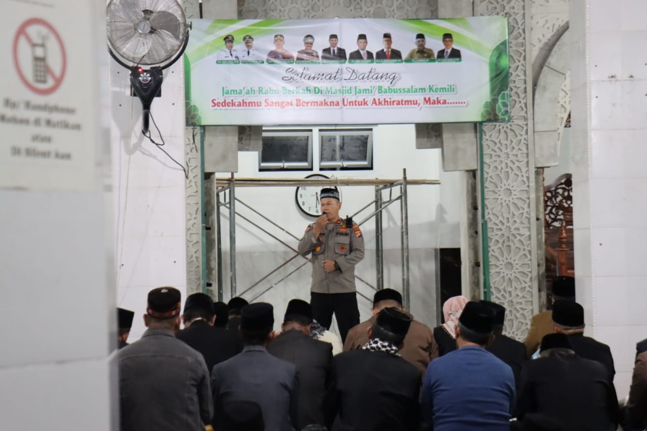 Kapolres Aceh Tengah AKBP. Muhammad Taufiq, S.I.K, M.H, diwakili Wakapolres Kompol. Samsir turun langsung memberi tausiyah kamtibmas kepada jamaah.