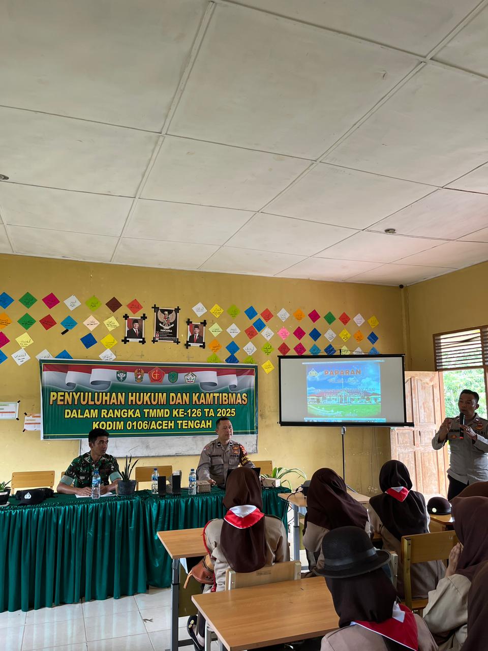 Satgas TNI Manunggal Membangun Desa (TMMD) ke-126 Kodim 0106 Aceh Tengah gandeng Polsek Linge dalam memberikan penyuluhan hukum dan keamanan serta ketertiban masyarakat (Kamtibmas), Kamis (23/10/2025).