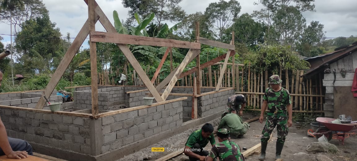 Progres pembangunan Rumah Tidak Layak Huni (RTLH) yang dikerjakan TNI dan masyarakat melalui program TNI Manunggal Membangun Desa (TMMD) ke-126 Kodim 0106/Aceh Tengah telah mencapai 50 Persen.