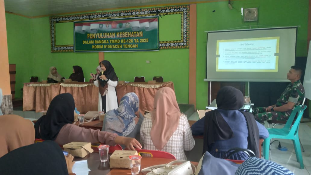 TNI Manunggal Membangun Desa (TMMD) ke-126 Kodim 0106/Aceh Tengah menggandeng Dinas kesehatan melaksanakan penyuluhan kesehatan kepada masyarakat di Kampung (Desa “Red) Kute Keramil Kecamatan Linge Kabupaten Aceh Tengah, Sabtu (25/10/2025).