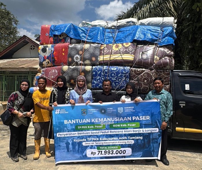 Pada kesempatan tersebut, Komite IV DPD RI Sinta Rosma Yenti, M.A, yang juga menjabat sebagai Ketua TP PKK Kabupaten Paser, berkolaborasi dengan Gabungan Organisasi Wanita (GOW) Kabupaten Paser menyalurkan bantuan kemanusiaan senilai Rp71.993.000.